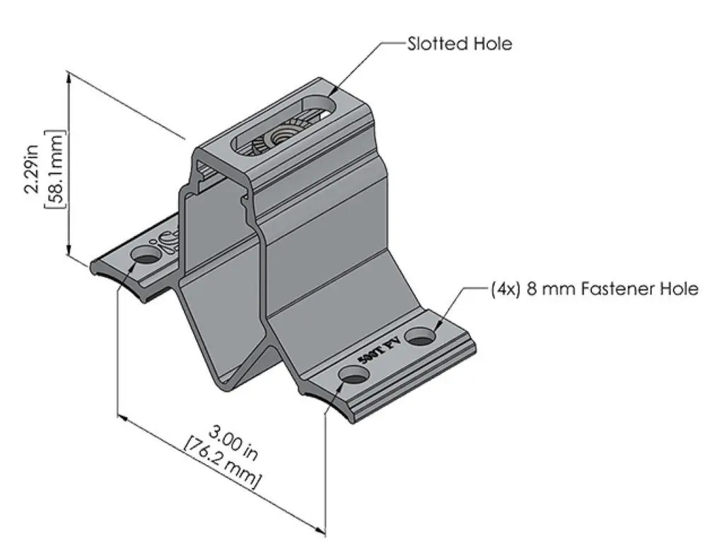 With the CorruBracket 500T PV, the “500” bracket designation refers to metric dimensioning. See the “100” for imperial compatibility.