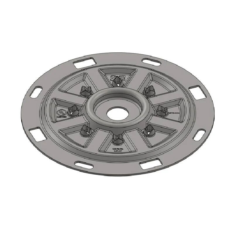 S-5! PV Disk Aluminium by S5 is a structural platform that performs multiple functions, including bonding teeth that abrade anodization to create a continuous electrical path along module columns. The PV Disk as slotted holes at the edge of the disk that act as attachment locations for wire management ties. The product has a length of 75, a height of 5, and a width of 75, with a packaging weight of 0.3
